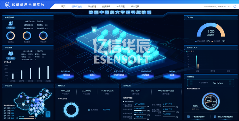 陜西中醫藥大學數據分析平臺項目是為學校構建一個可視化、自動化的數據管理平臺。可實現統計圖、地圖應用、多維分析等可視化效果,收獲數據價值,輔助校領導決策,驅動學校不斷進步。平臺以計算機網絡為核心技術支撐,以信息資源的充分共享為手段,以校領導便捷辦公及決策等為主要目標。同時,數據分析平臺項目建設也是學校信息化建設的高級過程,既是對學校數據的全面梳理,更是對學校信息化建設成果的進一步擴展與提升。