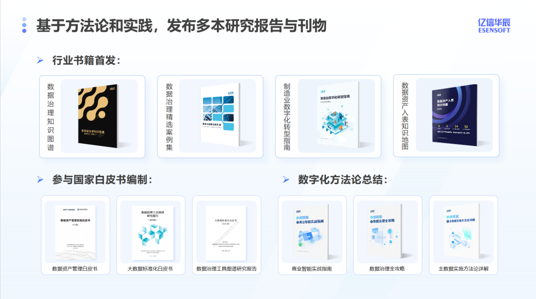 億信華辰積極推進(jìn)產(chǎn)學(xué)研深度融合,加入中國(guó)信息通信研究院、大數(shù)據(jù)技術(shù)標(biāo)準(zhǔn)推進(jìn)委員會(huì)、全國(guó)信標(biāo)委大數(shù)據(jù)標(biāo)準(zhǔn)工作組等國(guó)家行業(yè)性組織,參與國(guó)家各類標(biāo)準(zhǔn)及行業(yè)白皮書的編制和討論,基于方法論和實(shí)踐,行業(yè)獨(dú)家首發(fā)《數(shù)據(jù)治理知識(shí)圖譜》、《數(shù)據(jù)治理精選案例集》、《數(shù)據(jù)資產(chǎn)入表知識(shí)地圖》等知識(shí)性書籍,助推大數(shù)據(jù)及數(shù)據(jù)治理行業(yè)發(fā)展。