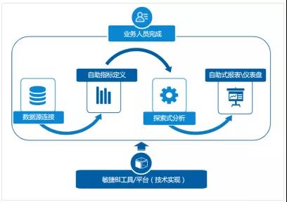 ? 敏捷的數據分析和快速響應能力。自助式BI的業務流程中,業務人員可以自助式的實現數據源連接、指標集定義、探索式分析、高效查詢和自助的報表制作和儀表盤展示,即時響應需示變化,并可實現信息共享。
