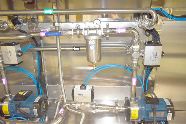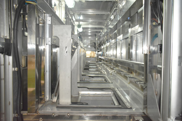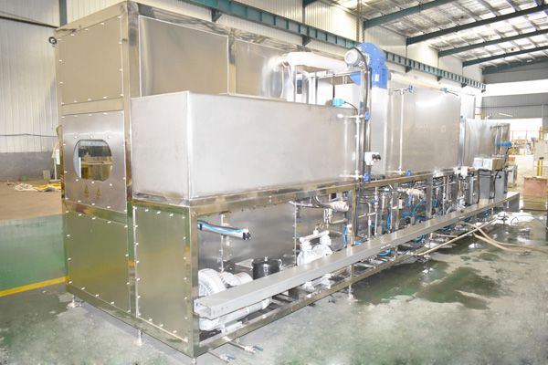 該設(shè)備有上料工位、 超聲波清洗工位× 4、 酒精漂洗工位、 風刀切液工位、下料工位、 廢液儲存槽× 2、溶液預(yù)加熱槽× 2、 桁架機械手、清洗工裝、 拋動系統(tǒng)、 隔爆溫控水浴加熱系統(tǒng)、 PLC+觸摸屏控制系統(tǒng)、 管路系統(tǒng)及智能電器控制系統(tǒng)設(shè)備等組成。該設(shè)備清洗效果好、提高了工件的清潔度。該機結(jié)構(gòu)設(shè)計及工藝安排合理、自動化程度高、清洗精度高,有效解決了此類工件的清洗難題。