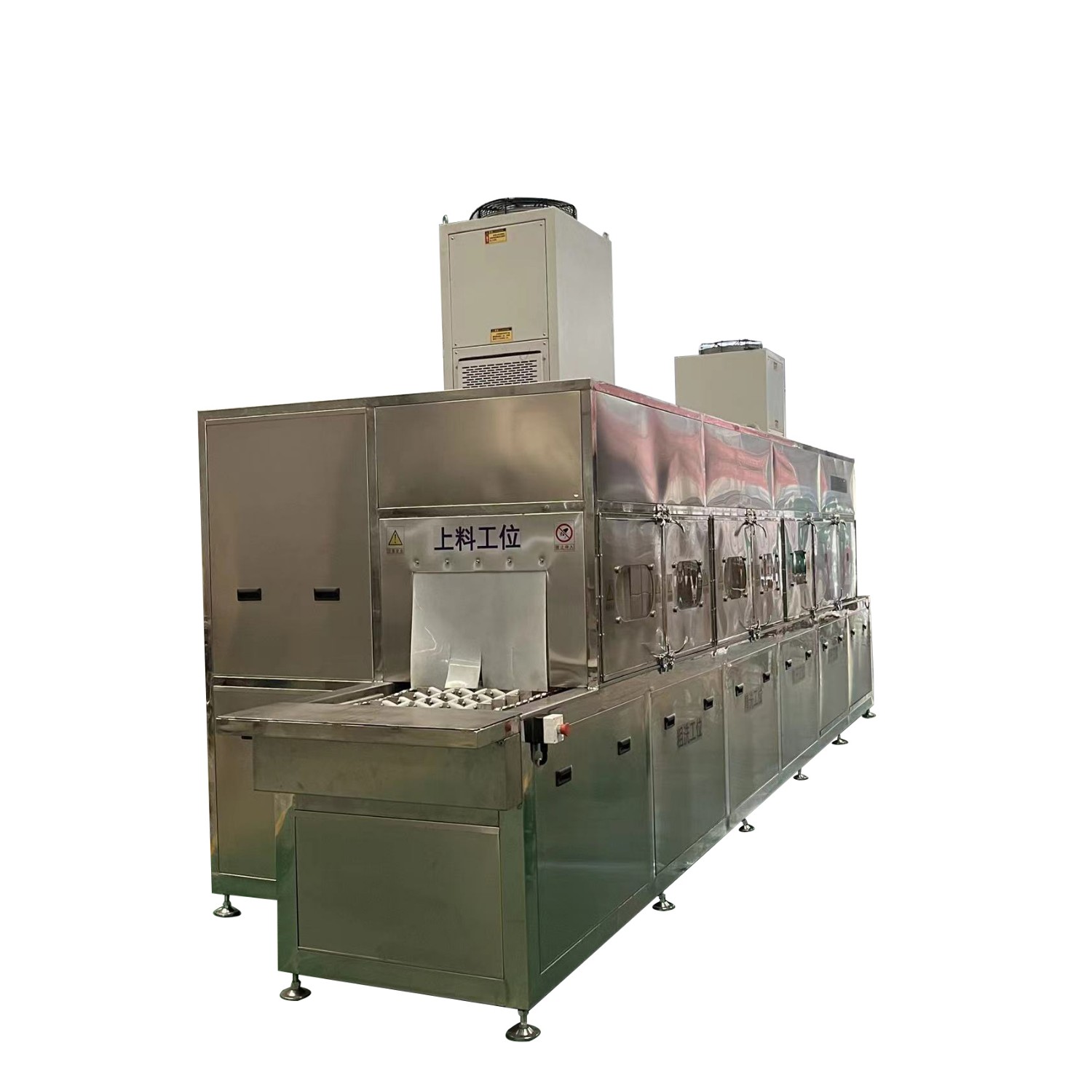 該設備有上下料網帶、噴淋清洗工位、噴淋漂洗工位、高壓風切、熱風烘干工位、溫控水加熱系統、風機、溫控空氣加熱系統、PLC+觸摸屏控制系統、管路系統及智能電器控制系統等組成。自動進排液和自動加溫系統完全實現了無人干預,自動運行,很大程度上降低了工人的勞動強度。先進的霧氣處理系統可以將清洗時產生的霧氣冷凝回流,空氣經過濾和活性炭吸附后排出。